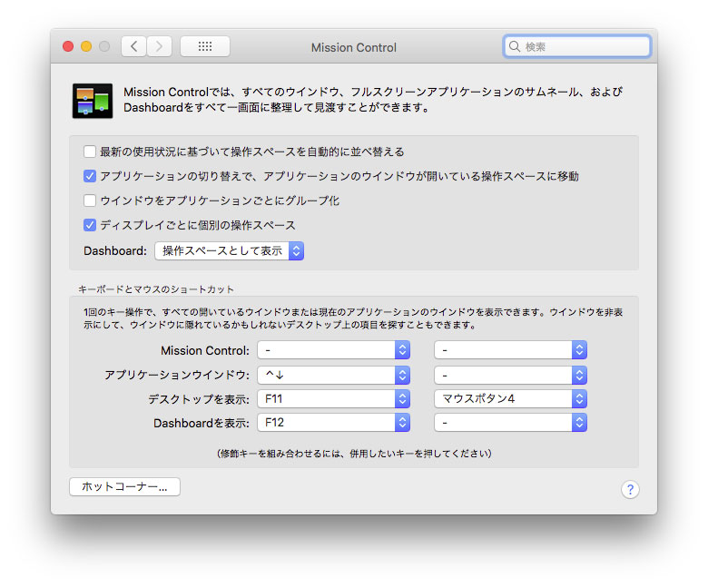 システム環境設定 → Mission Control