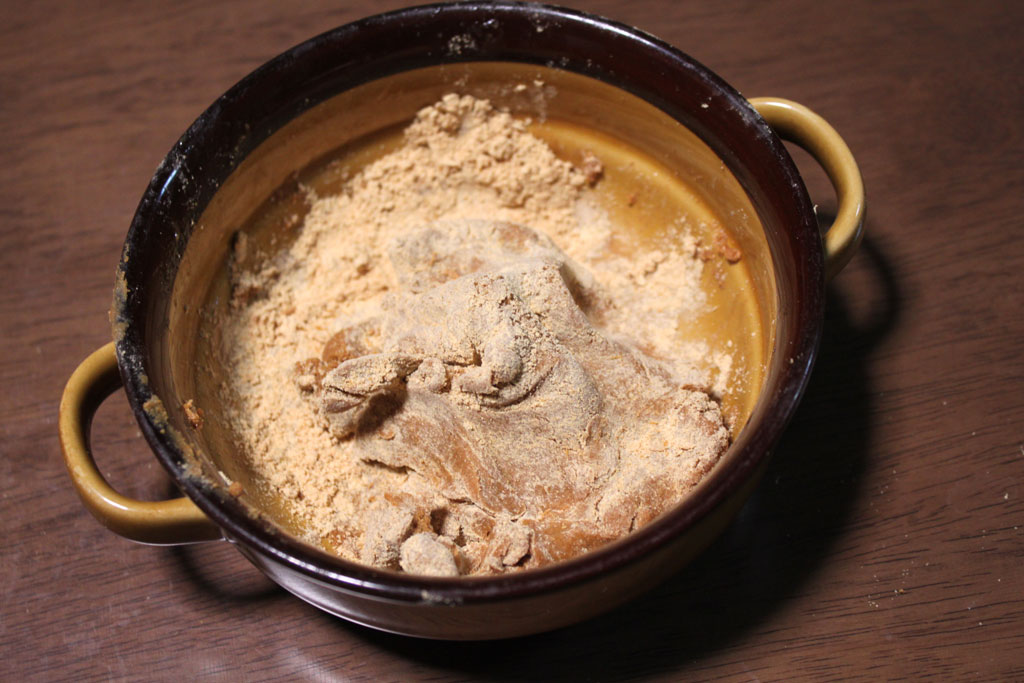 端的に言えばきな粉に蜜を混ぜて練れば完成。