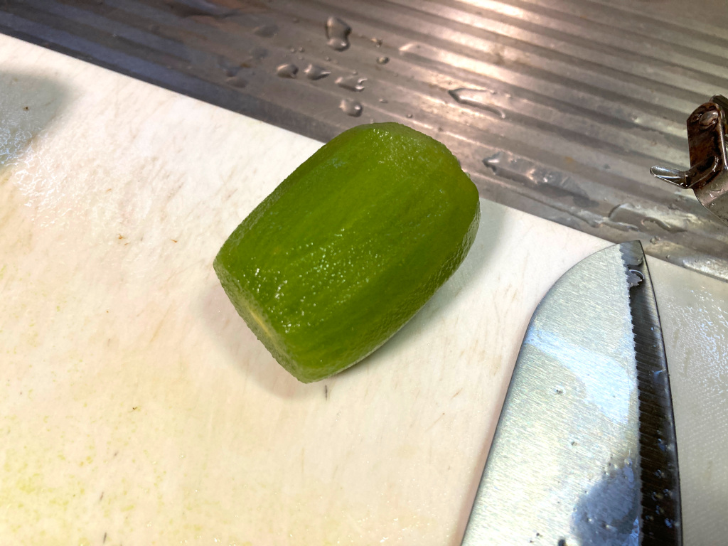 今回ジャムにしたのは皮を剥いて1kgほどのキウイ。
