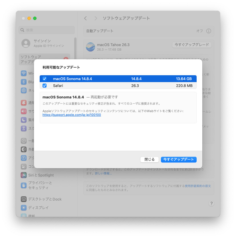 macOS Sonoma 14.8.4 へのアップデート手順