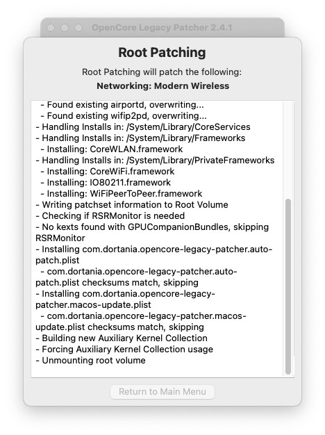 最新版にアップデート必須。もしOCLPをアップデートしたなら最新ルートパッチを当てておく。